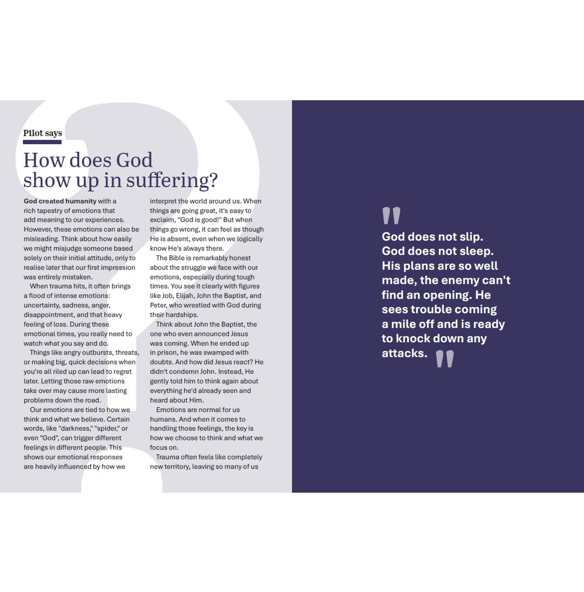 This practical book wants to help you, in God’s presence, to swallow your spit, catch your breath, and gain a fresh perspective on life from God’s point of view.